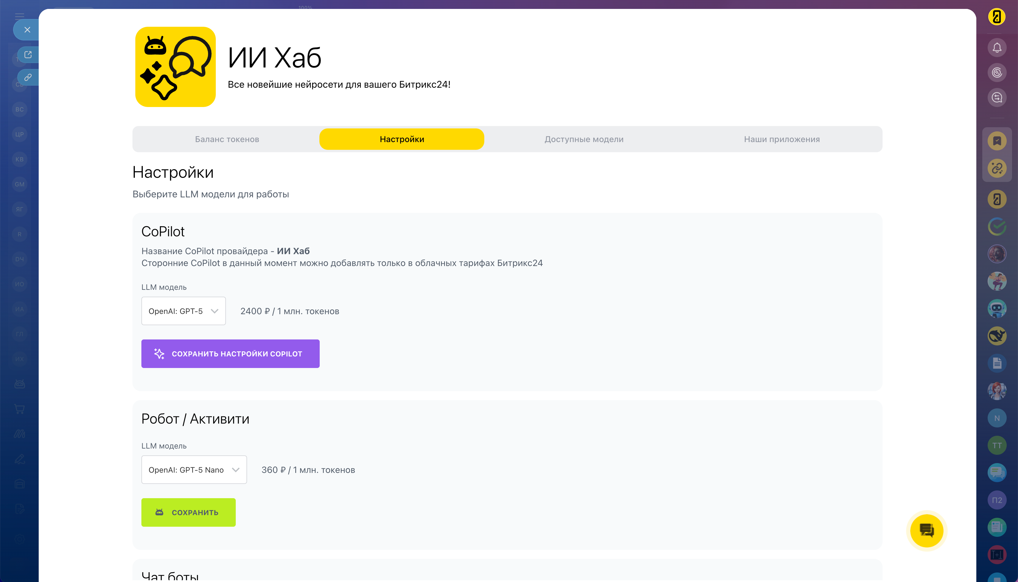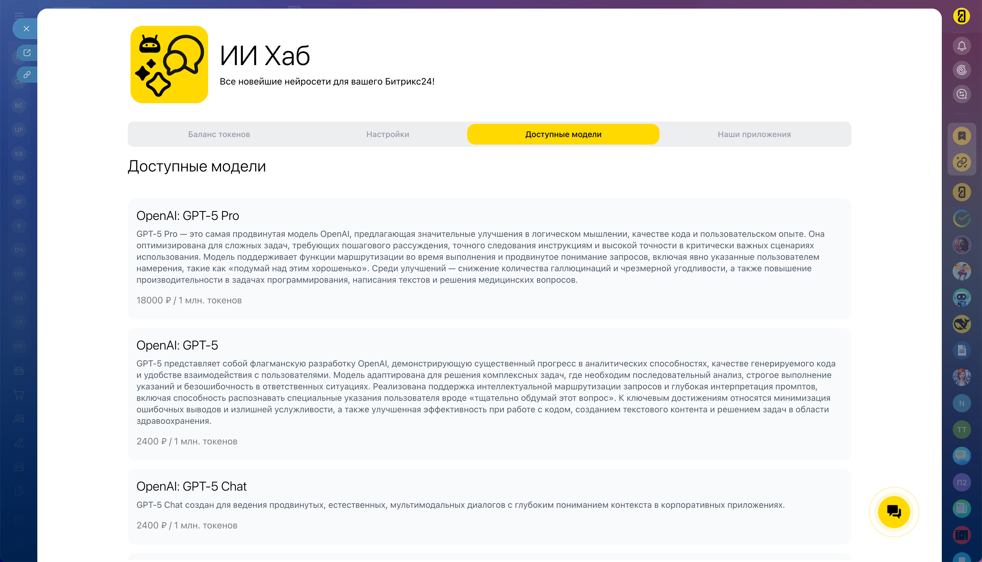 Превратите Битрикс24 в интеллектуальную систему нового поколения. Используйте мощь GPT-5, Claude, Gemini и других топовых моделей для решения ваших бизнес-задач!